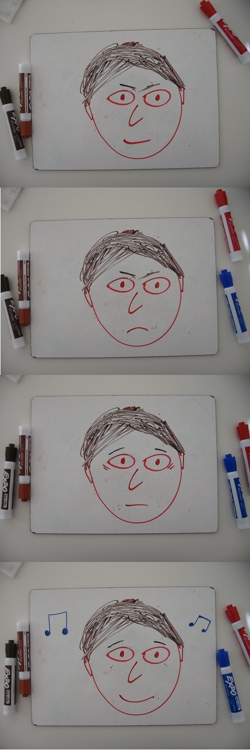 Silence. A bad sign. In pairs, they’re typically chatty and playful; silence means they lacked the confidence to venture a guess aloud, even to a single partner.