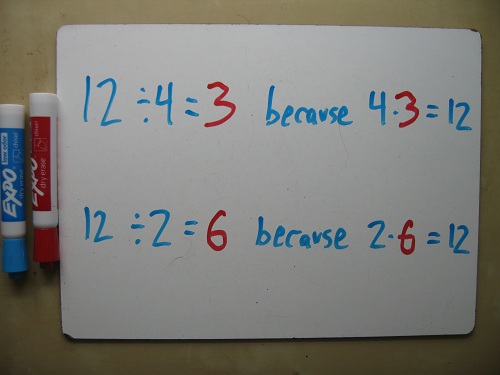 Division is the inverse of multiplication. So when you divide 12 by 4, you’re saying: “What times 4 gives you 12?”