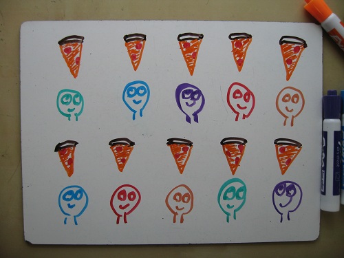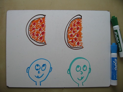 Well, it’s 1 pizza ÷ ½ pizzas per person = 2 people.