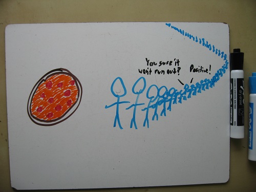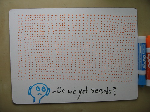 And how many can you feed if each gets 1/1000 of a pizza (a crumb with a dab of sauce)?