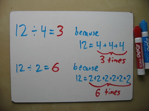 Division is a fancy kind of subtraction. “How many times can you take two from twelve before it’s all gone?”