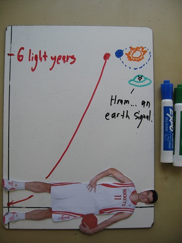 By Yao’s shoulders (75 inches), we’ve reached the far end of the galaxy – a place so far away that even Star Trek treats it as unimaginably removed from home.