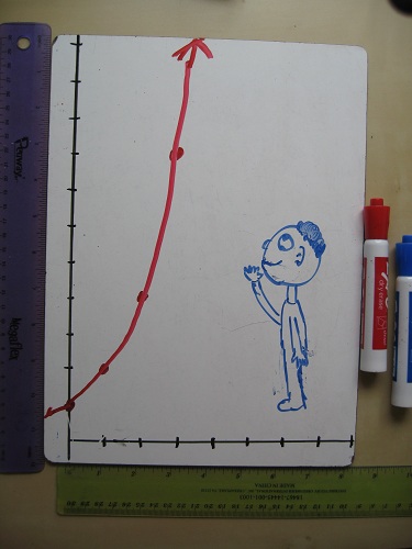The sultan agrees, not realizing that on the 64th and final square, he’ll need to stack 600 trillion pounds of rice – enough to cover Rhode Island to a depth of 1400 feet. That’s exponential growth. It may start slow, but it quickly reaches dizzying heights.