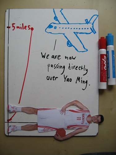 At Yao’s thighs (34 inches), we’ve reached the moon.