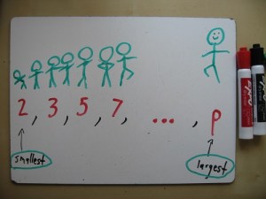 And so what Euclid says is, “Suppose you’re right. Suppose the primes DO end. Well, in that case, let’s call the largest prime P.”