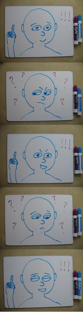 Me: Yes, yes. And eventually the light comes on, but it’s slow, and there are these alternating moments of illumination and darkness. And that’s how it is understanding tough math. You feel like you get it, then you don’t. There’s a moment where it’s perfectly clear, then a moment where it all seems hopeless. Your understanding flickers at first, but eventually it becomes steady and bright.