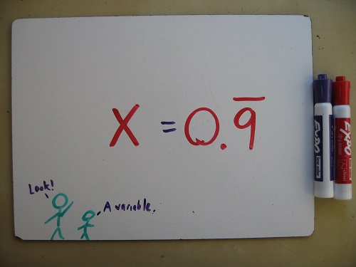 Adrian led a pack of disbelievers in the claim that 0.999… = 1. (By 0.999…, I mean the decimal number in which the 9’s go on forever and ever.) “You’re crazy,” Adrian said. “You’ve lost your grip on reality, Orlin. Snap out of it.”