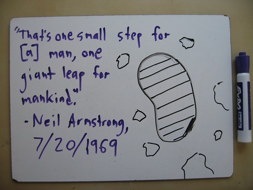 Neil Armstrong – the first man to set foot on the moon, with Buzz Aldrin right behind him and Michael Collins orbiting above – died precisely one year ago. I wrote a clumsy tribute that evening. This is it. (Recommended soundtrack: “What a Wonderful World,” by Louis Armstrong.)