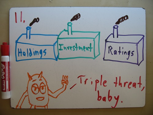 12. Have your ratings agency assign a “100% AAA Guaranteed Awesome” rating to the derivatives. Assure market-watchers that “Paper Clip Holdings” has emerged “strong and lean” from its bankruptcy proceedings, and that “Paper Clip Investments” is run by sorcerers, prophets, and wild men of unspeakable genius.
