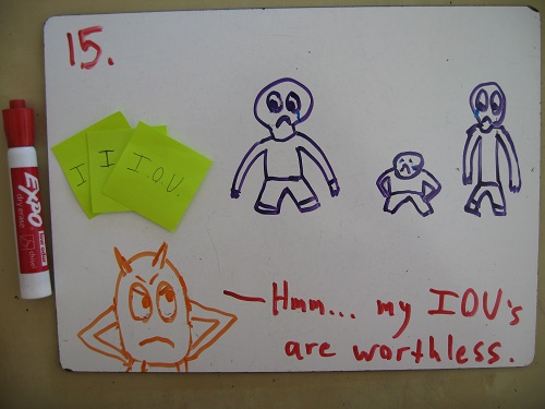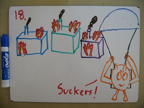 11. Create a third corporation called “Paper Clip Ratings Agency,” devoted to evaluating investments opportunities in the burgeoning paper clips futures and derivatives market. Fill the board with cardboard cutouts and recent corpses.