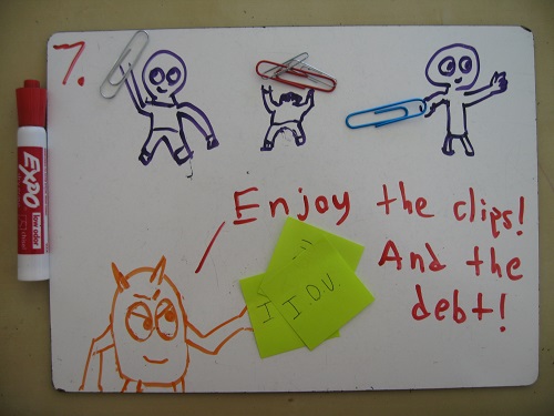 6. In the ensuing arbitration, settle all existing debts for $0.95 on the dollar—leaving you with $1 million worth of paper clips.