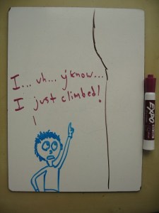 Ben, I am very angry with you. I have just started learning how to be a maths teacher, and also started to learn how to rock-climb. I had been writing a diary, in which I drew what I thought to be fantastic links between the two. Then I found this. Somehow you have traveled through time, stolen my ideas, and written them more eloquently. Very skillful, but very unfair.