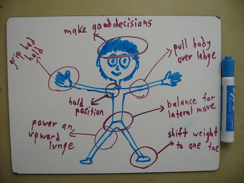 A friend of mine likes to tease people for “climbing like a man.” You’ll see ripped guys, brand new to climbing, haul themselves up a tough route via brute strength. Muscles strain. Veins bulge. It’s quite impressive. And after a climb or two, they’re too exhausted to continue. They’ve mistaken “rock-climbing” for a series of pull-ups, and the misunderstanding quickly wears them out.