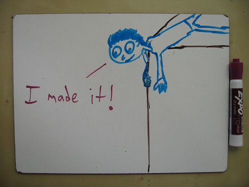 Because my mind exhales analogies (in much the same way that my body exhales CO2), I’m constantly drawing connections between rock-climbing and teaching math. In my own grunting and straining, I hear the graceless echo of my students’ efforts, but from the other side. Back in the classroom, I was the one holding the ropes, with two feet planted on flat, sturdy ground. I assured them not to worry, that I’d catch them if they fell. Now, I’m the one clinging to the wall, hoping like heck that the ropes don’t break.