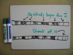 “About 1 in 500.” The student’s eyes widened. “And I laid 500 stones each day. So you’d expect to have a streak of ten somewhere in that sequence.”
