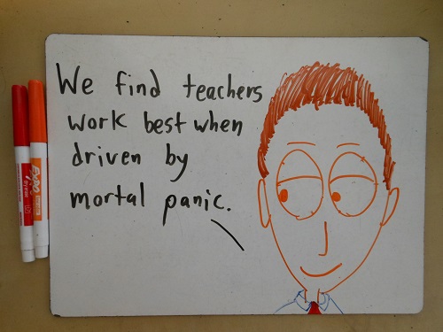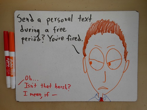 2. A few years before you came along to teach in Oakland, the charter school had a principal who drove fear deep into every student and teacher’s heart. Even the history teacher who was in the military as a sergeant was afraid of him. He stood in front of the entrance every morning with a cup of hot coffee with a sharp eye. It was believed he sweetened his coffee with a mixture of teacher sweat and student tears.