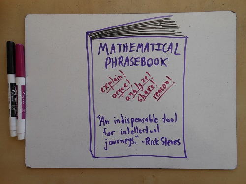 Second: the verbal angle. English class isn’t the “opposite” of math class, as too many students think. Rather, good language skills empower us to discuss ideas of all types and stripes, especially mathematical ones. A precise and evocative vocabulary is beyond precious. Language allows us to debate productively, to learn as a collective, to think as a team.