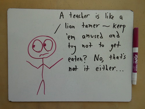 When I was in teacher college I was asked to explain why I became a teacher. The first time I was asked I took the questions seriously and spouted off some buzzwords. The 5th time I was asked I cringed. The 10th time I was asked I casually informed the professor that I had a world domination plan that involved minions and children were the most vulnerable and therefore mouldable asset available. So in short, I just had to get my teaching certificate to hide my brainwashing intentions.