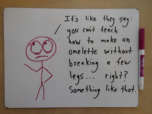 And I definitely mean that bit about teachers of all philosophies. I work hard on my teaching, and I’m sometimes even proud of it, but a world where all math teachers are like me would be an awful, impoverished world missing lots of what makes it interesting.