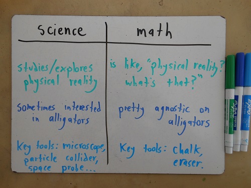I’d say the basic distinction still holds: mathematicians care about idealizations and abstractions for their own sake, while scientists employ abstractions and models only for the sake of gleaning insight about reality. But I probably undersold the variety of methods that scientists draw on. (Obviously, astronomers can’t limit themselves to conducting “experiments.”)