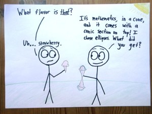 3. I laughed… I cried… I wanted to create the ice cream flavor “Mathematics” (nuts, definitely; coffee, for the long hours; something salty, as the tears; raspberry swirl, as the blood (yes, blood, I tell you); chocolate, for the comfort (in squares); . Then alliterate it all.