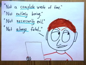 Their answers spanned the whole spectrum of attitudes, from rapture to resignation, from joyful to jilted. (Apologies for the alliteration; I can’t contain it. Clearly.) Here’s a small sampling selection smattering collection of their answers, in all their silly wit and strange variety.