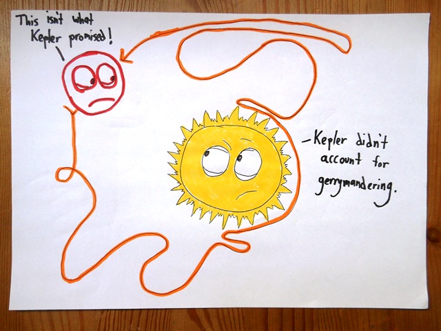 New Law: Planets orbit the sun in a series of strange curlicues, to be redistricted whenever a new party takes power.