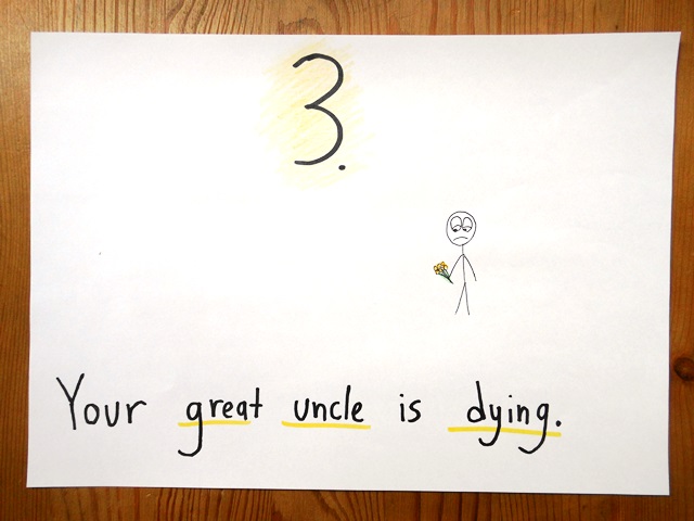 A difficult man, largely neglected by his own children, he has come to embrace you as one of his few points of contact beyond the nursing home. Now, in his waning hours, he mistakes you for his estranged son, Bradley, and delivers a tearful apology. “I was a terrible father,” he says. “Forgive me, Brad.”