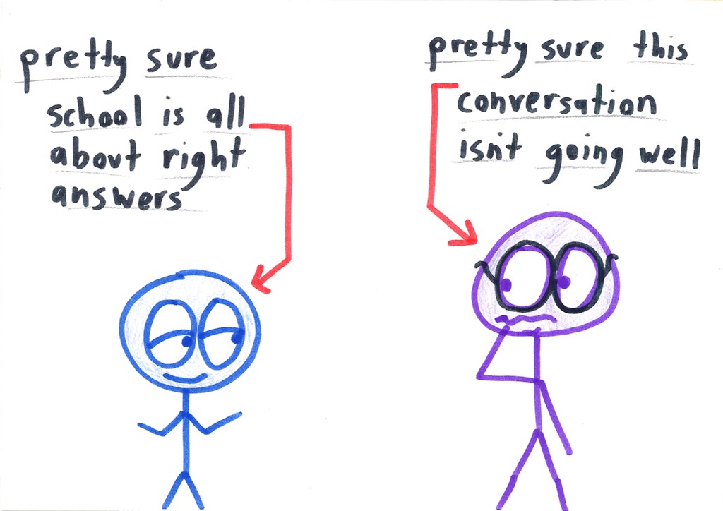 1. That’s a really good point. Right answers DO matter; bridges and software are built out of ’em. But the species of “right answer” we emphasize in school is a sickly, miniature version of the real thing.