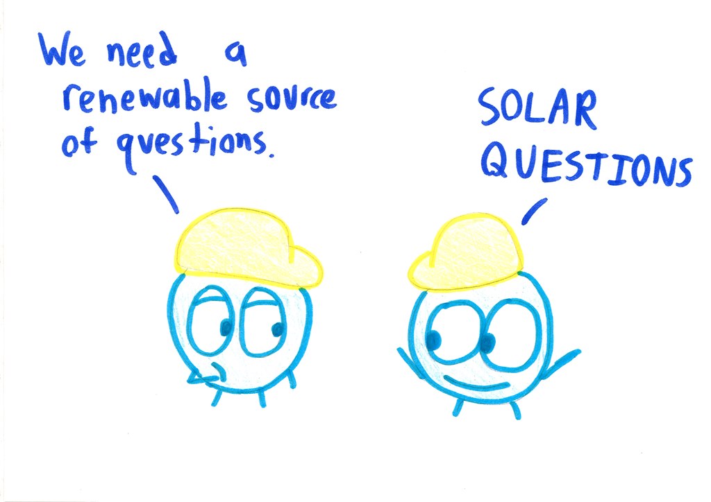 This tickled me. I’d never thought of good questions like a fossil fuel. A nonrenewable resource. Built up over eons and consumed in minutes.
