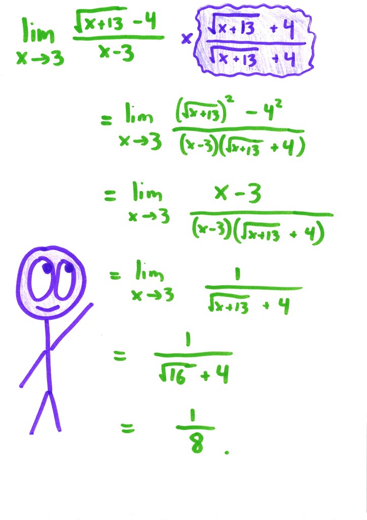 And here, again with square roots, to solve a limit (without recourse to the heavy machinery of L’Hopital’s Rule):