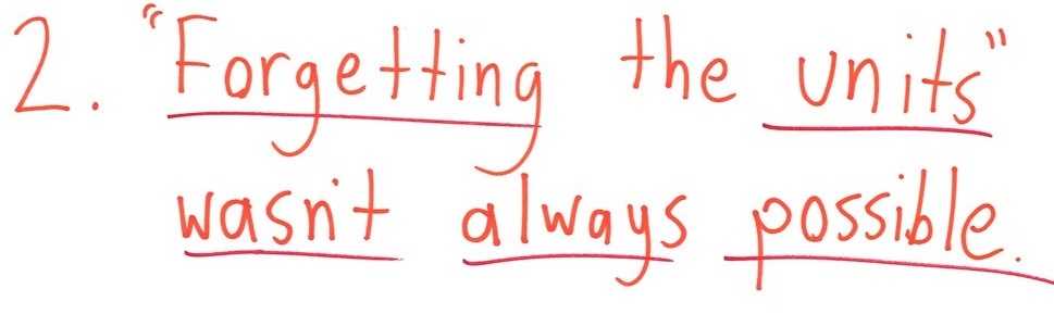 Math and science teachers chide students for “forgetting their units.” Omitting units is like leaving a number naked and unclothed. Do you mean 7 feet? 7 meters? 7 miles? Or 7 jars of jelly?