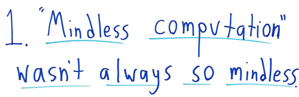 Hop in a time machine. Tour the range of human societies. You’ll find that most consider the idea of “mindless” computation paradoxical, nonsensical—a contradiction in terms.