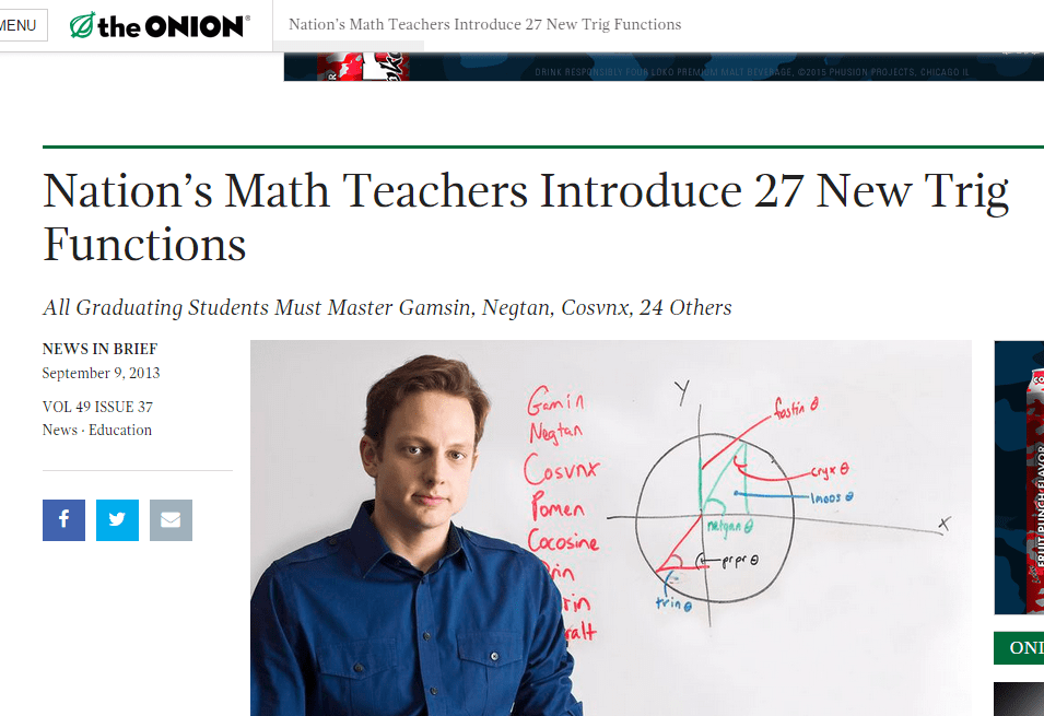 In 2013, The Onion thrilled the nation’s math teachers by, at long last, mentioning them: