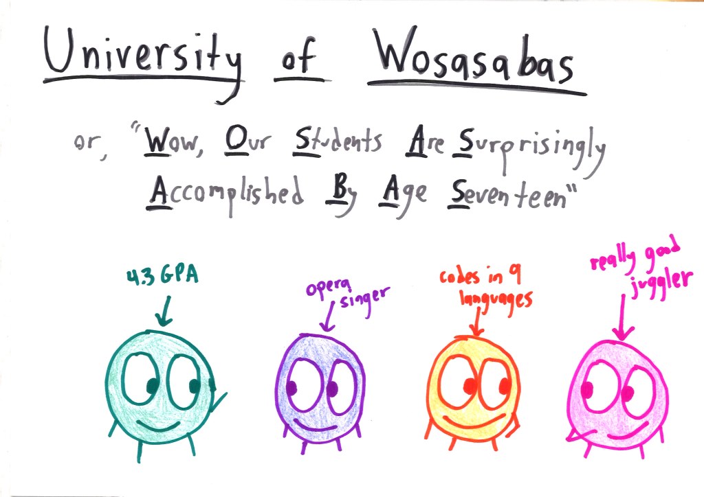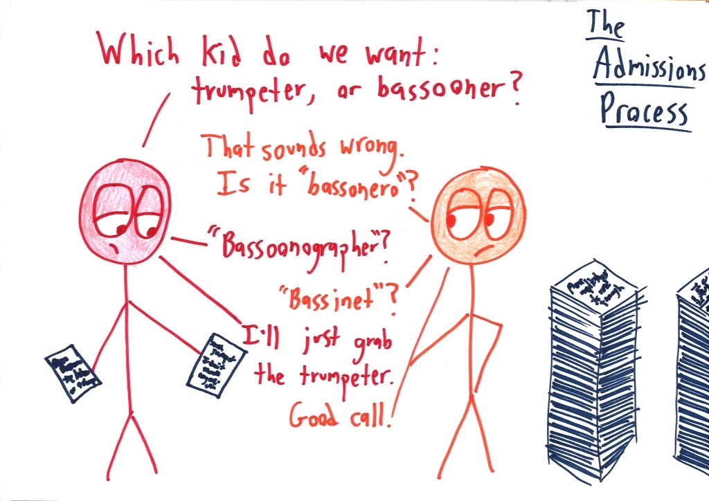 I don’t fault the admissions office. For every bed in the freshman dorms, twenty kids are lining up, at least five of whom are flawless high-school rock stars. From that murderer’s row, they face the impossible task of picking just one to admit. There’s no right answer.