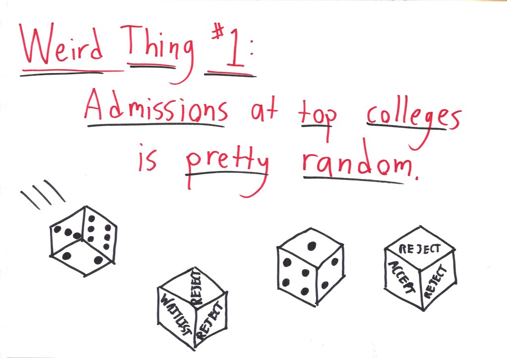 With so many uber-qualified students lining up, top colleges don’t—as you might expect—look for the “very best.” They don’t even operate on a single, well-defined notion of what “best” means. Instead, they pick and choose. They go for balance. They’re just trying to fill their campus with a dynamic, diverse cohort of freshmen. Consistency and “fairness”—whatever that would mean—have nothing to do with it.