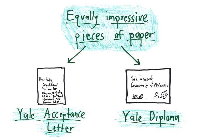 You may have heard this chestnut: “The hardest thing about getting a Yale degree is getting accepted in the first place.” For me, it rings true. Thousands upon thousands of the rejects from Yale would have thrived there, if they’d just gotten the thick “yes” envelope instead of the thin “no” one. (That includes the five totally amazing kids I interviewed last year, none of whom got accepted.)