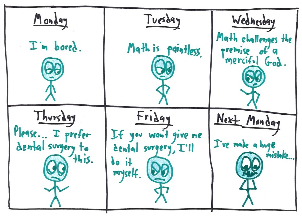 (Then I assign the exercise anyway, because class starts in five minutes and— despite my repeated petitions—the administration has denied me access to a time turner.)