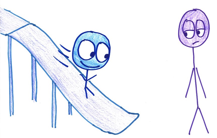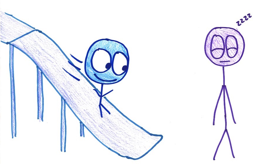 The sliding down is also an ‘excercise’. Something like that baby that drops his toys on the floor over and over again. He discovered gravity and experiments with it over and over again. They are grinding a path in their brains that helps them predict the world.