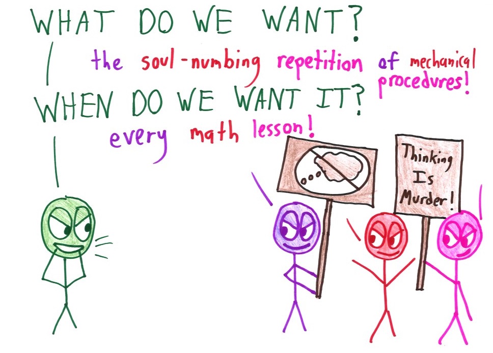 Eliminating the surprises from a math test is like eliminating the bacteria from your stomach. It might sound like a good idea, but only if you don’t know how a stomach works. Without those bacteria, you die. They’re the active ingredient, the metabolic engine, the weird but powerful secret to the organ’s entire functioning.