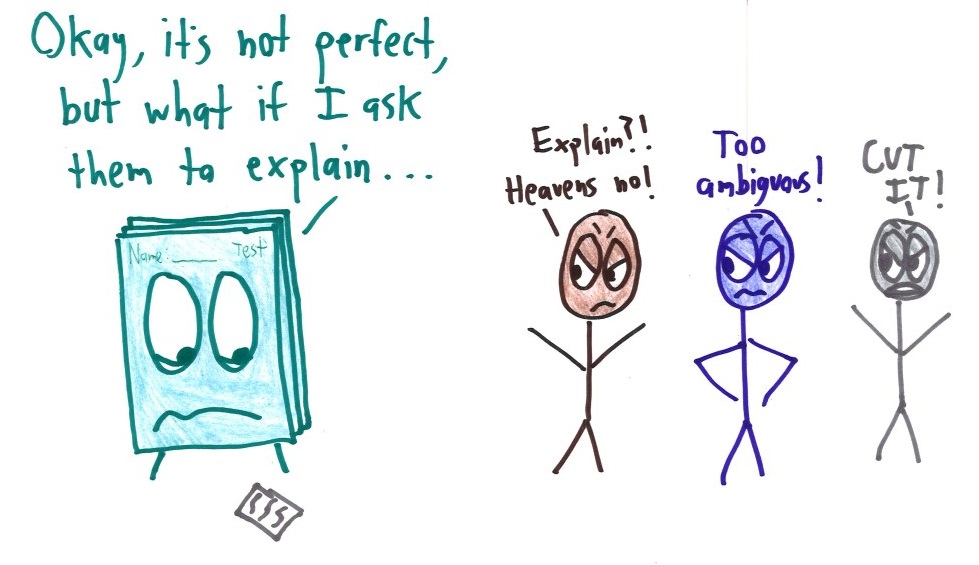 Every step of the way, we’re trying to sanitize our tests, to cleanse them of idiosyncrasy and irregularity. But those rough edges—surprising questions, strange twists, subversion of expectations—are what make tests work. They’re how we measure actual thinking and understanding, rather than just the narrow ability to carry out prescribed steps in a mechanical way.