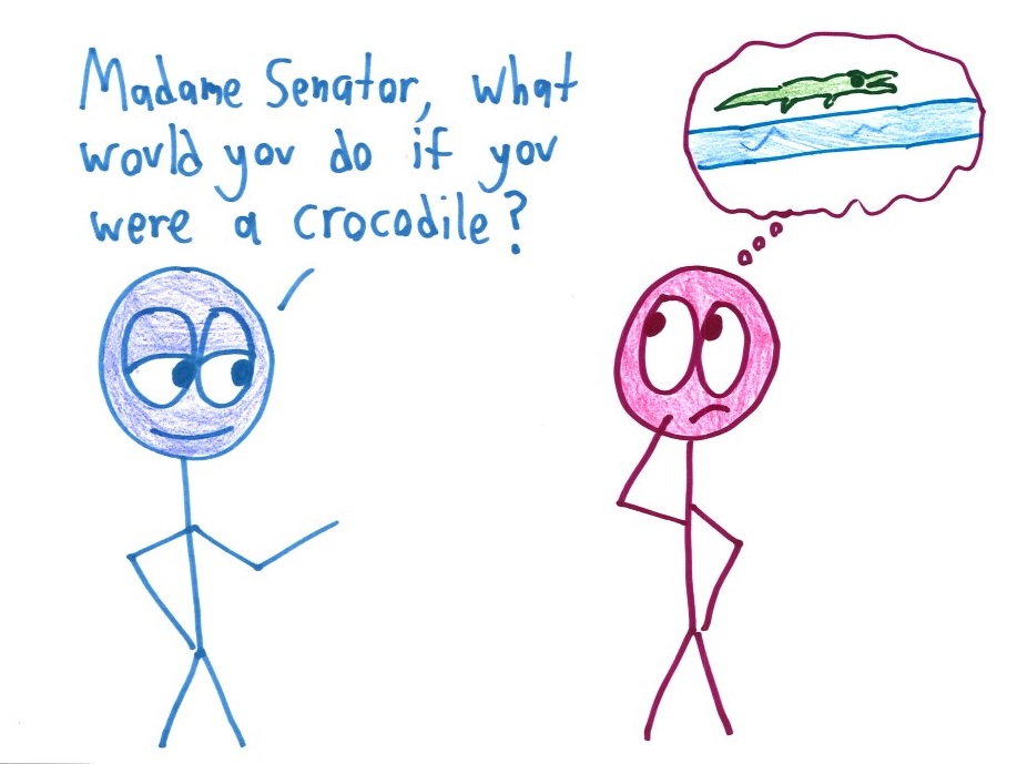 I would likely have answered the problem with something along the lines of, “None of the above. A crocodile doesn’t stalkits prey like that. It would wait underwater at the river’s edge and then, surprising the zebra, come up and grab the zebra by the face.”