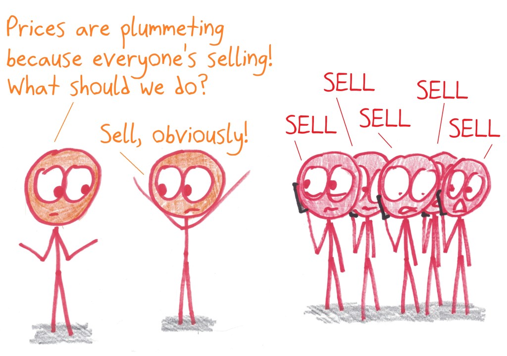 What makes for wise crowds? Not everyone needs to be knowledgeable. In fact, it’s okay if nobody knows much at all. What’s crucial is that every person’s choice is independent of every other person’s. When calamity strikes – and by “calamity” I mean “stock market crashes” – is when everyone in the crowd is herding around the same strategy.