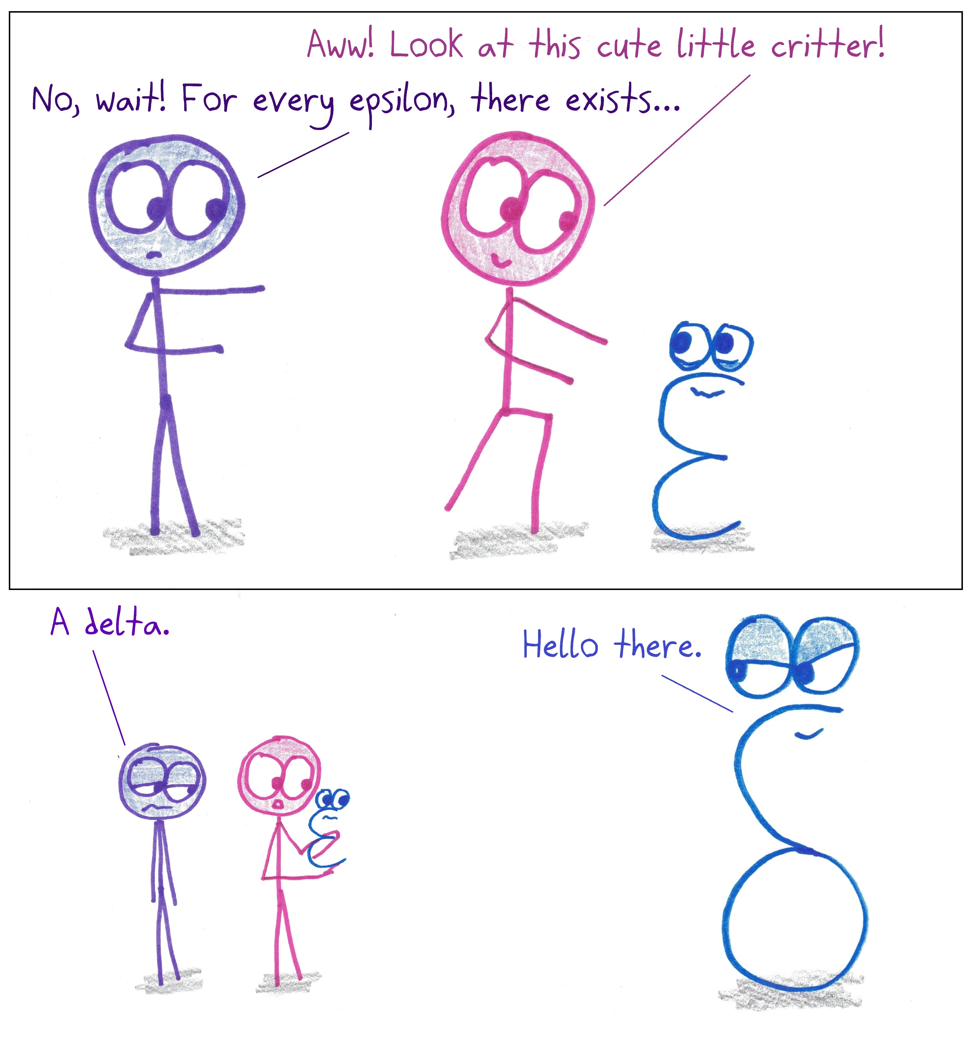 I really wanted to see an N far off in the distance behind your delta. From Tom Lehrer’s “for every epsilon” song http://ww3.haverford.edu/physics-astro/songs/lehrer/epsilonmath.htm