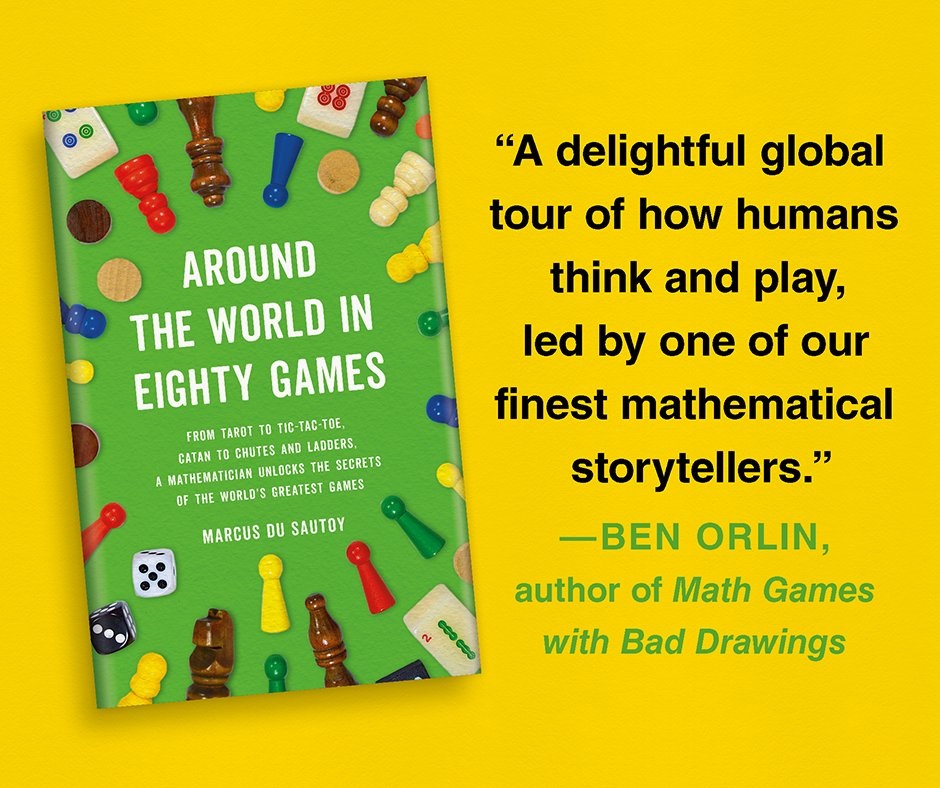 I should also mention Marcus du Sautoy’s new book of mathematical games, if only because the marketers decided to really run with my blurb: