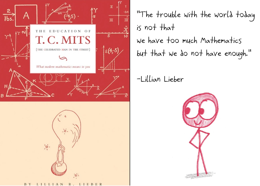 I also recommend Lillian Lieber’s midcentury pop math classic The Education of T.C. Mits. (The name stands for “The Celebrated Man in the Street.”)