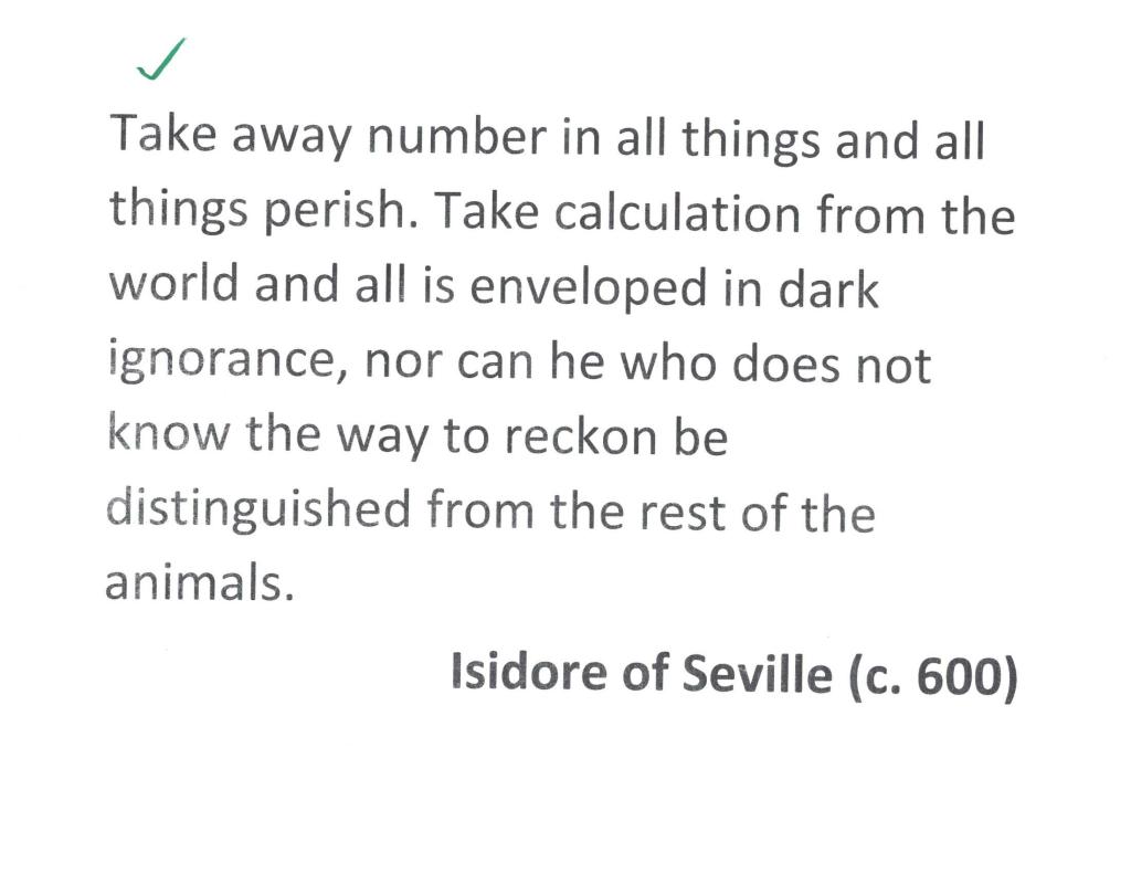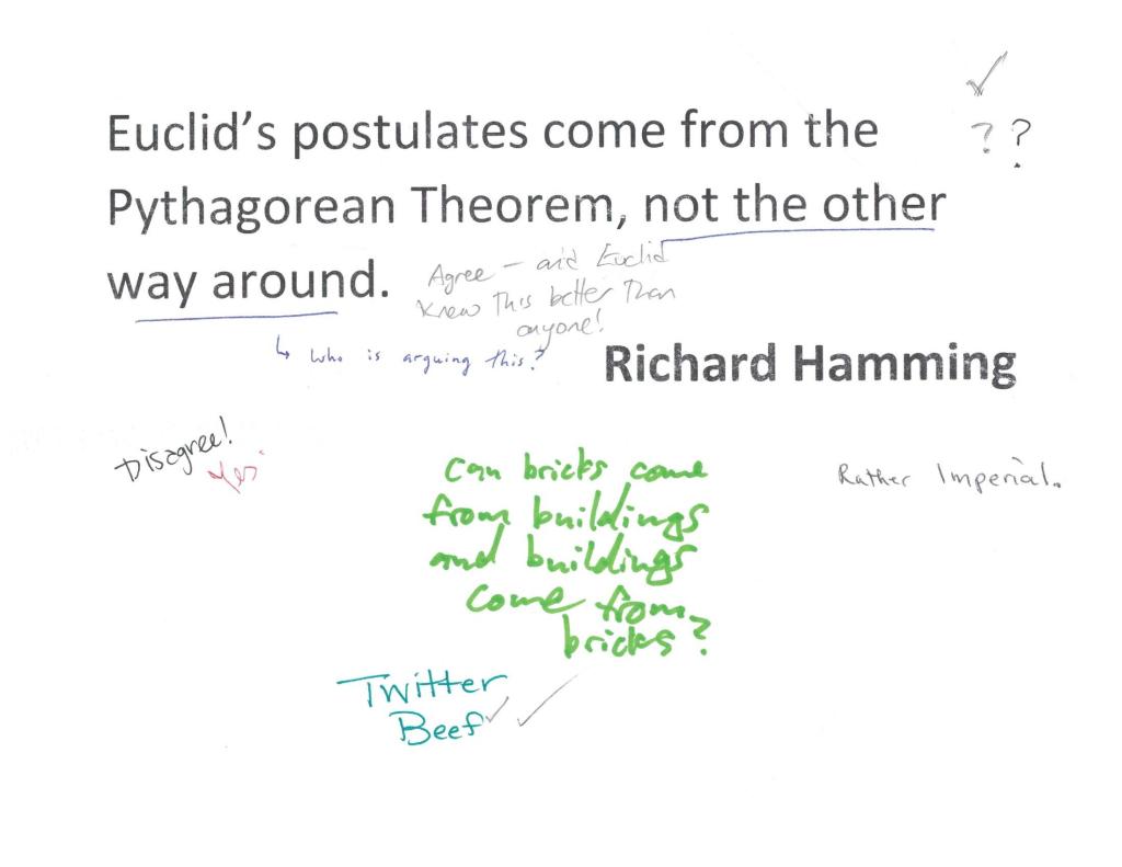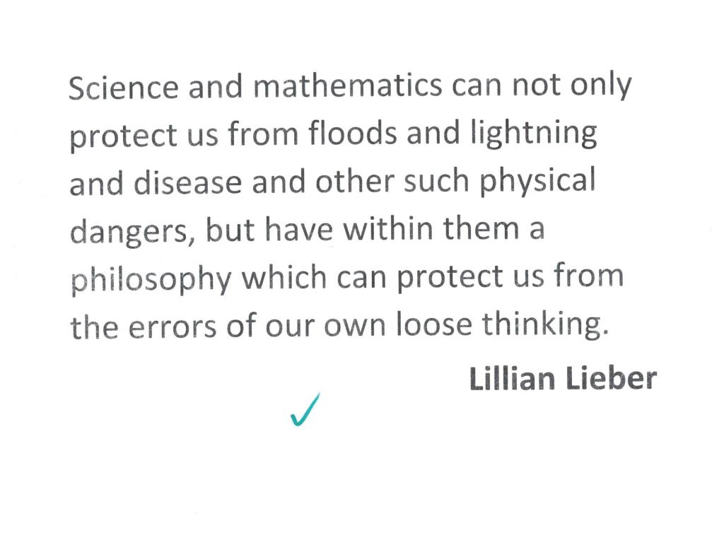 1. I teach a homeschool class and I have a weekly mathematical quote on their assignment page. I’ll be adding some of these to the rotation. Wish I had been there!