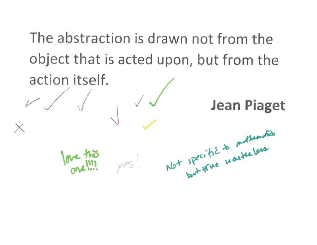 Some originally non-mathematical quotes (like this line, which I lifted from an Anna Sfard paper) found favor among the mathematicians: