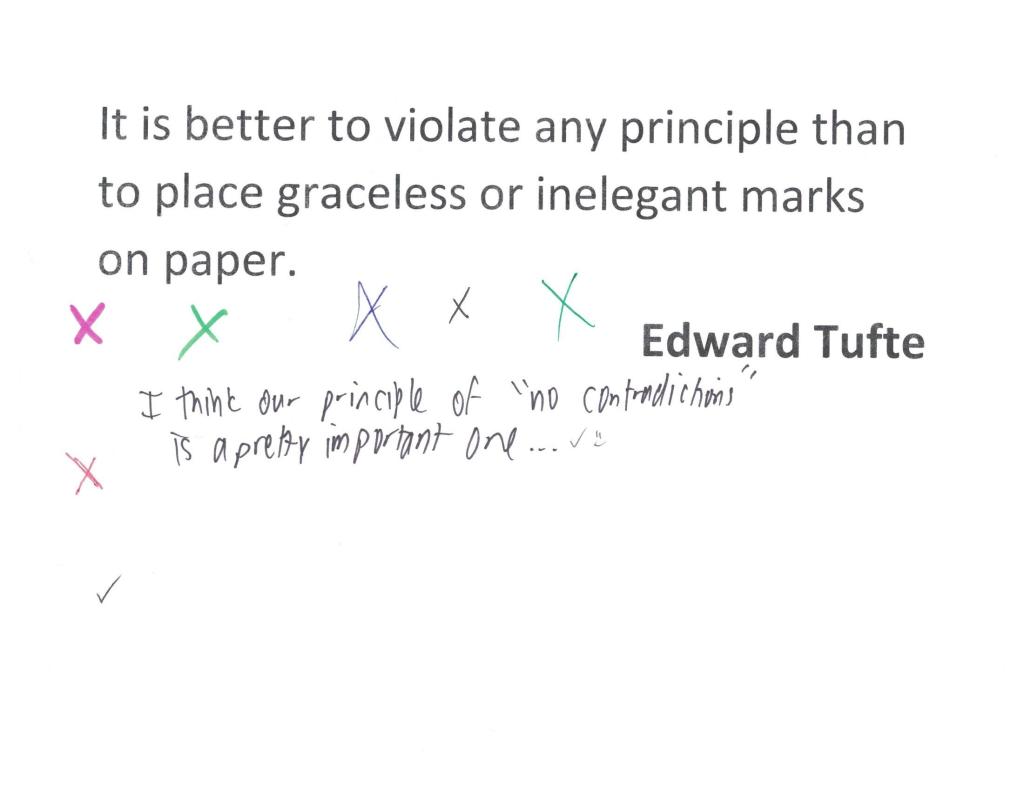 Meanwhile, an Edward Tufte favorite of mine, lifted from its original context on data visualization, no longer rang true.