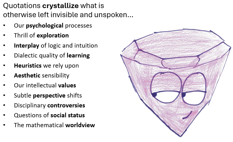And so what better way than quotation to crystallize all the aspects of mathematics that are missing in our usual forms of discourse?